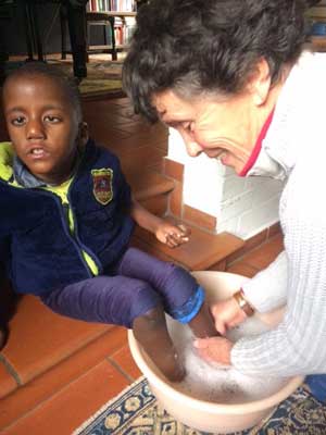 Dank der großartigen Hilfe von Dr. Jochen Jung und seinem Team in der Diakonie Bad Kreuznach und therapeutischer Hilfe aus Friedberg kann er nun auf eigenen Füßen afrikanischen Boden betreten. Seine Schritte sind zwar noch etwas unsicher, aber "gut Ding braucht Weil“ und es ist ja auch sehr schwierig, vom Kriechen und Krabbeln zum Stehen und Gehen zu kommen. Am 24.11. bringt ihn ein UBUNTU-Mitglied zurück zu seiner Mutter und bleibt dort ein paar Tage, um ihm den Übergang zu Erleichtern. Wir aber werden ihn sehr vermissen.